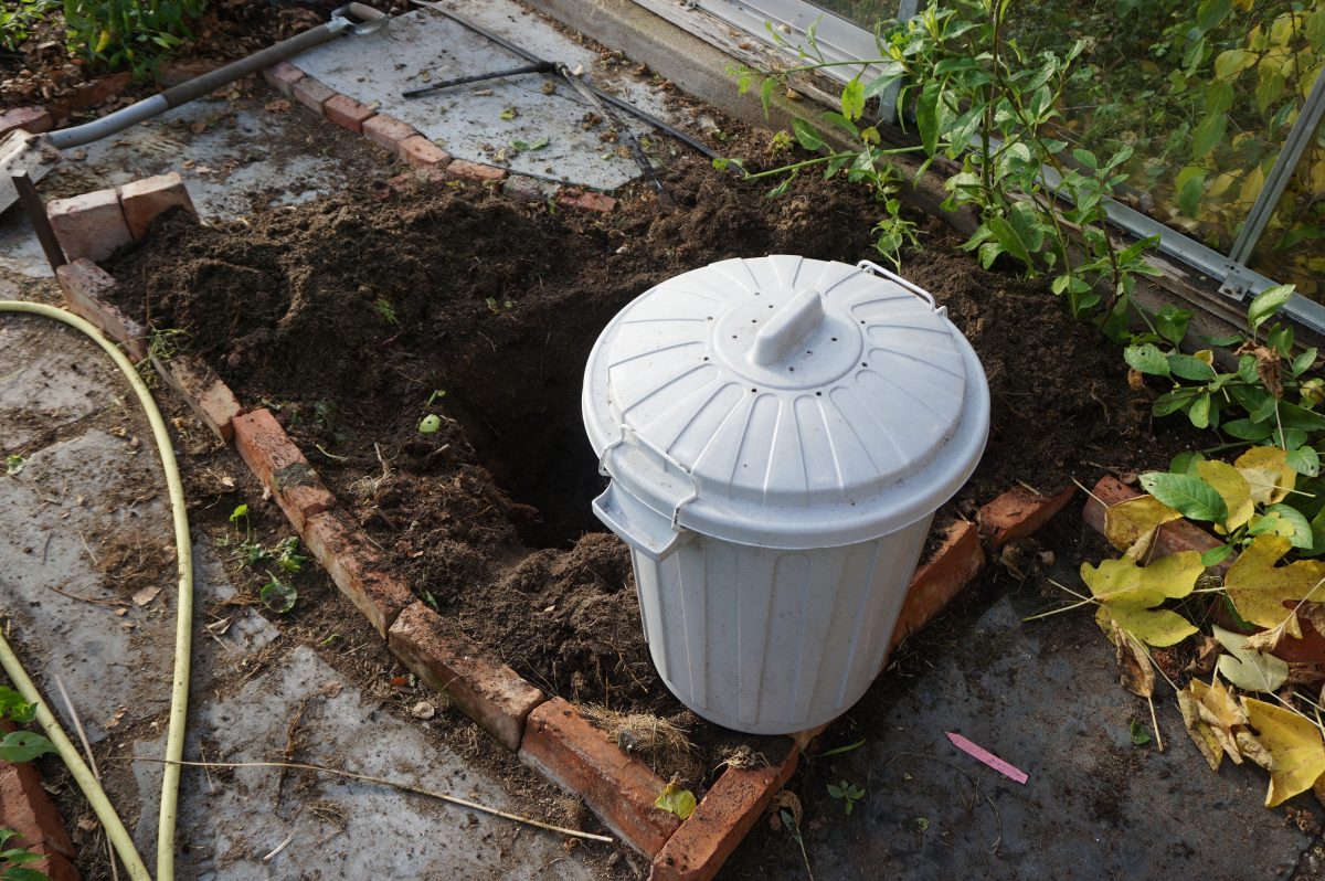 - Har du inget växthus men någon form av uthus så kan det vara ett ännu bättre alternativ att göra en lucka i golvet och gräva ner en tunna där. Här slipper du temperatursvängningarna du får i växthuset.